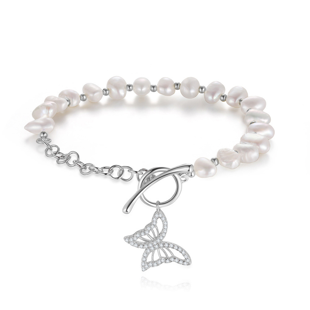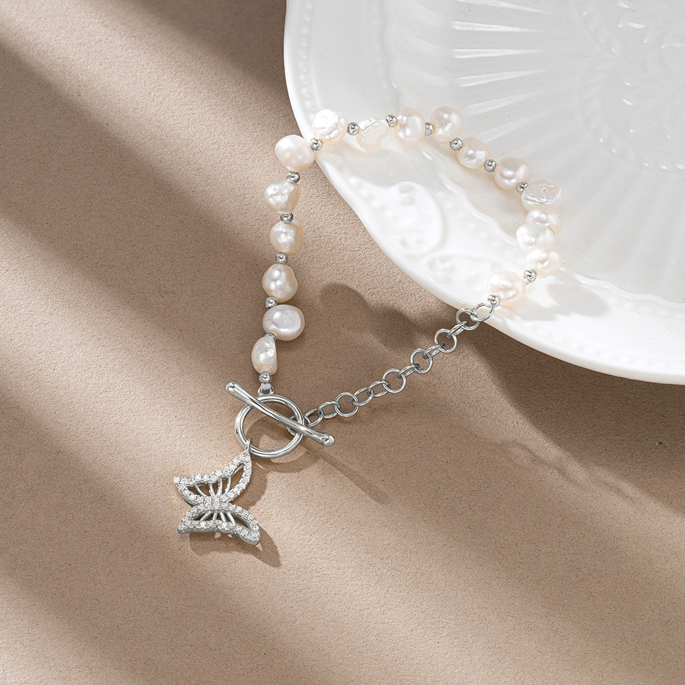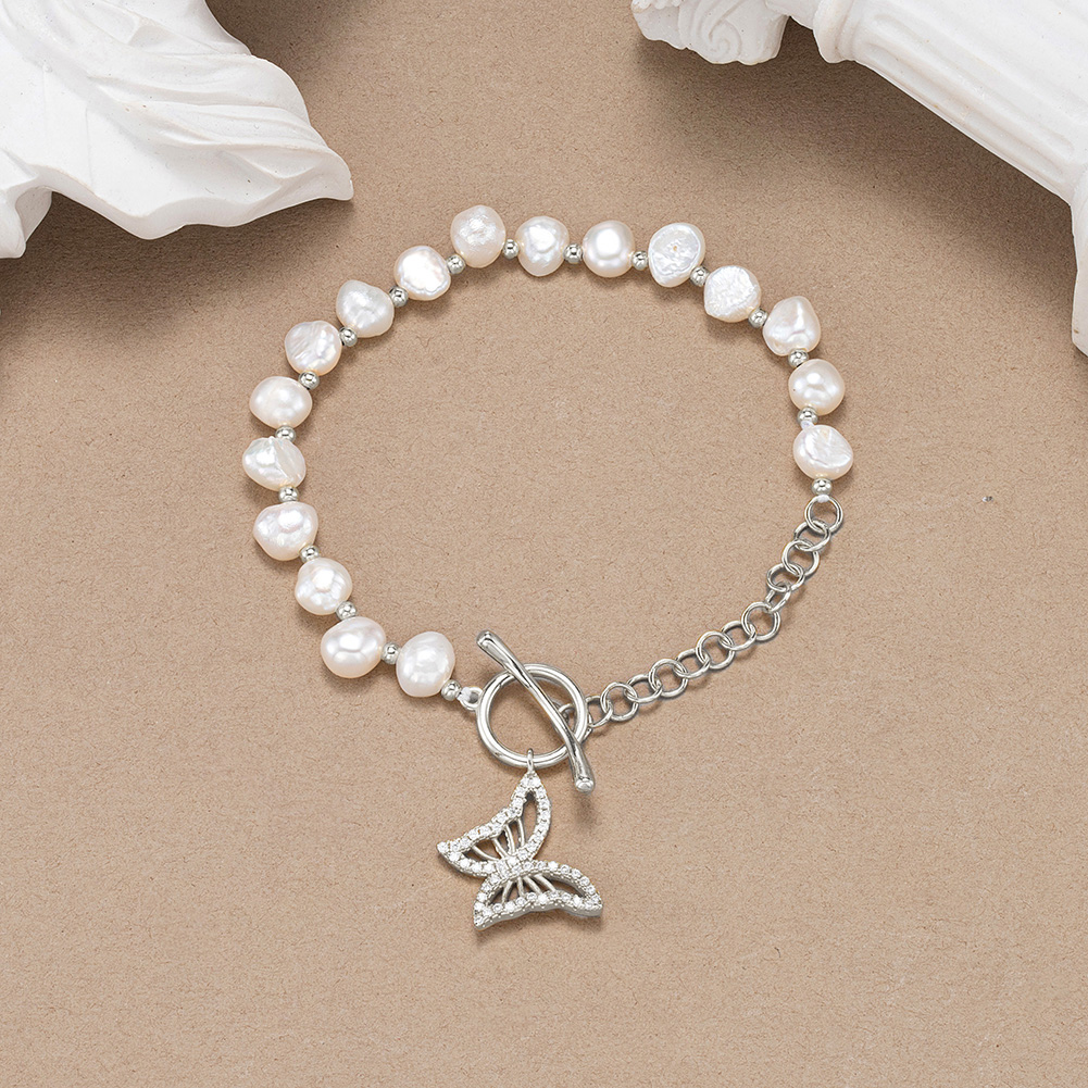 Гривна сребро, асиметрични бели перли ,16,5см.