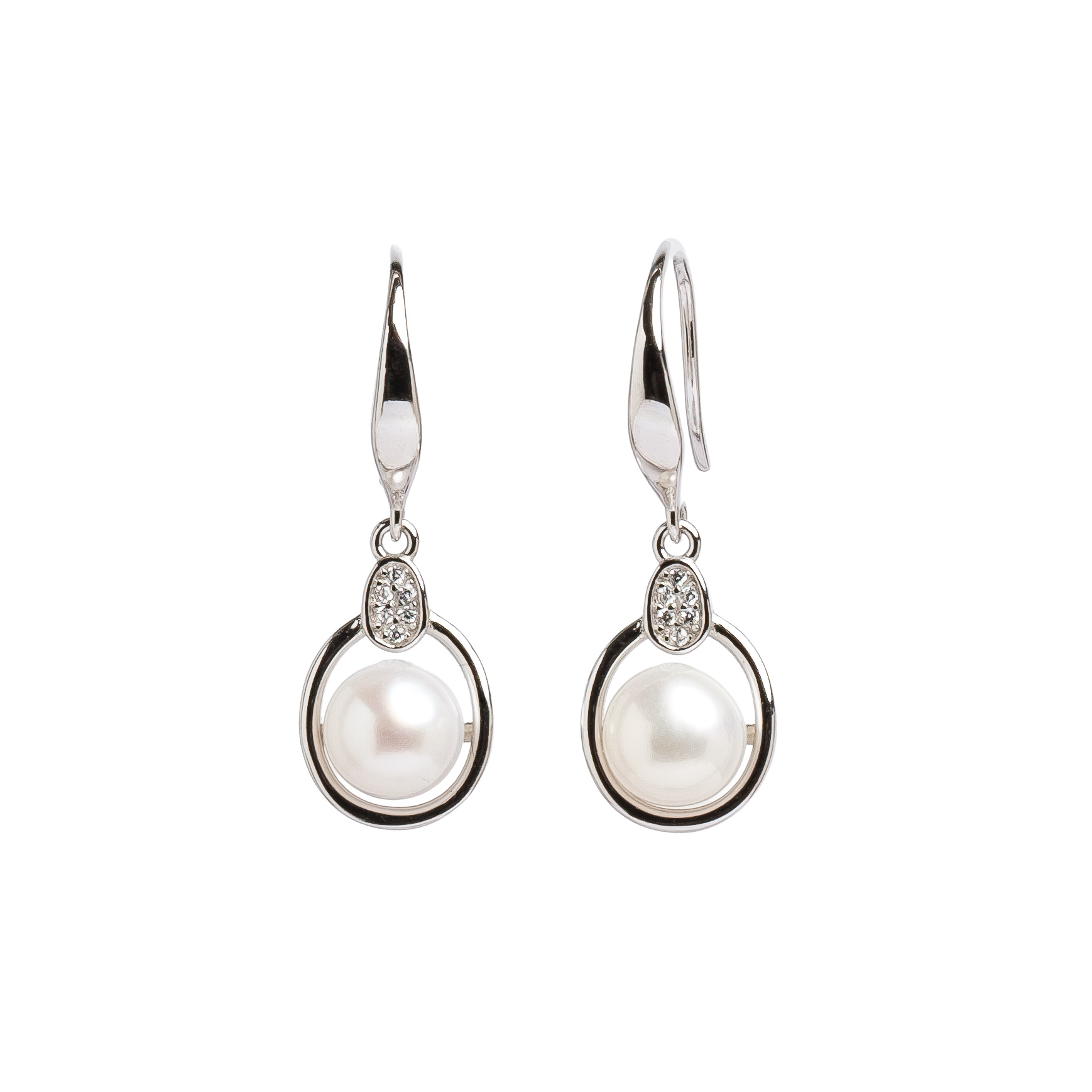 Обеци сребро,7мм бяла перла с цикронии.