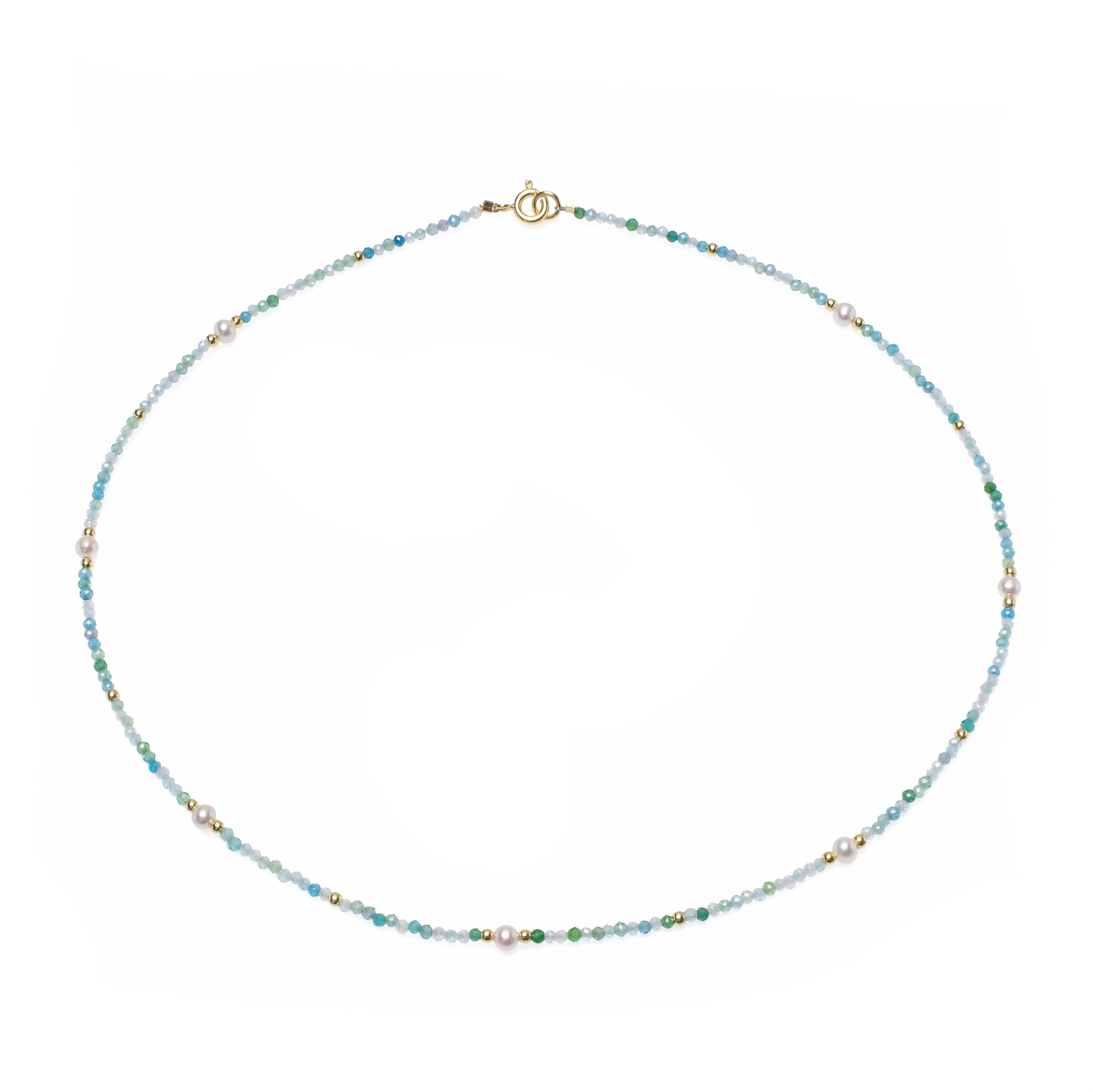 Нежно Колие със Синьо-зелен Шпинел и Бели Перли