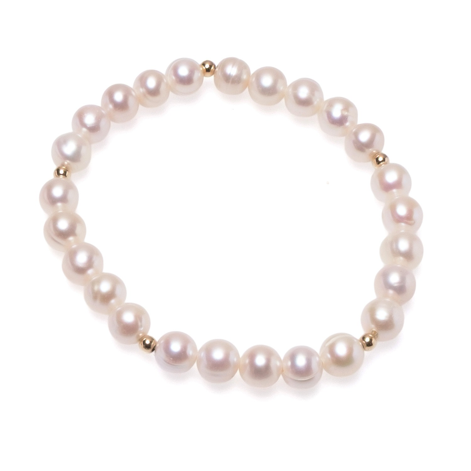 Гривна с бели перли 6-7мм и 5бр. позлатени елементи, 18/19см
