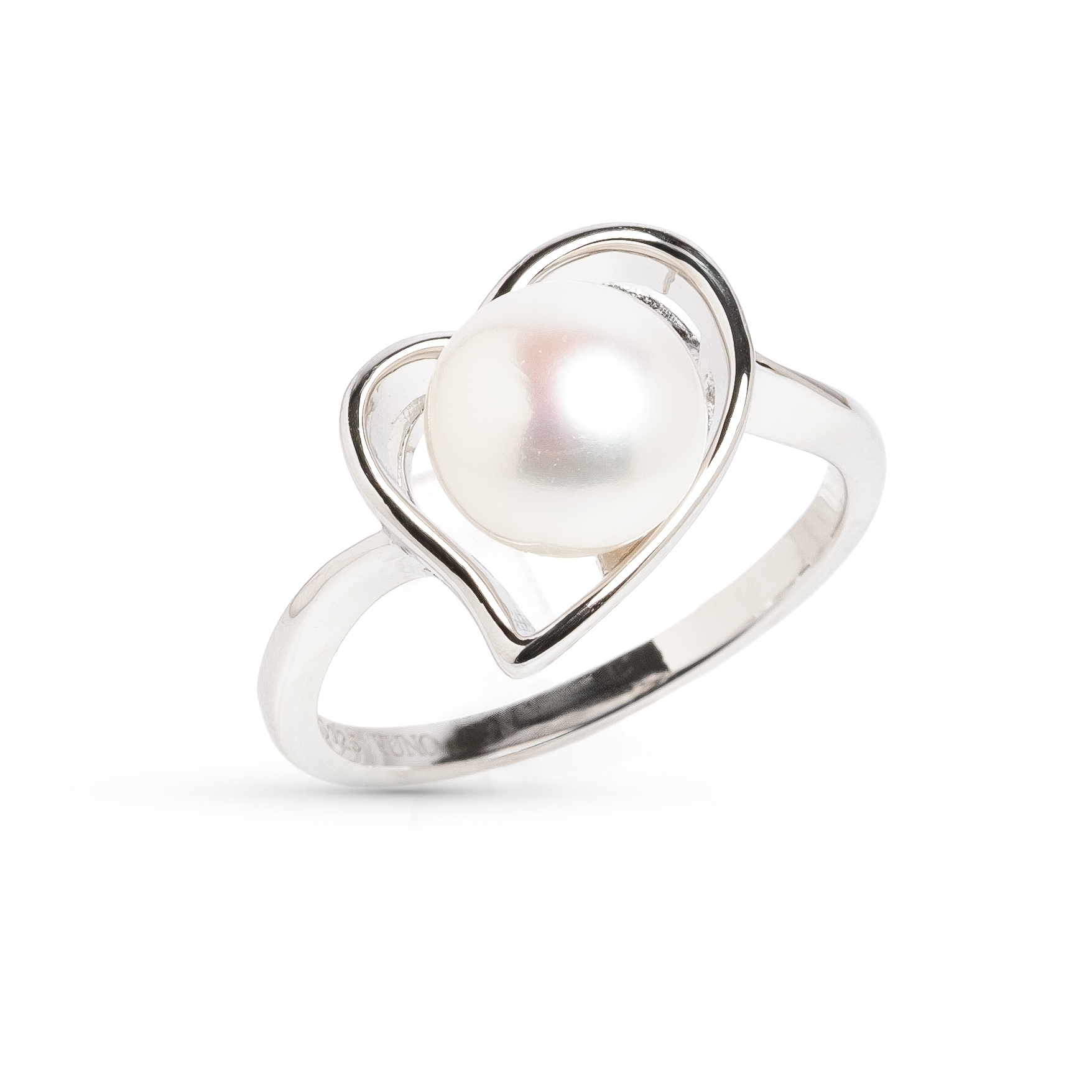 - Романтичен дизайн „Сърце“: Шината на пръстенa плавно преминава в стилизирана форма на сърце, която обгръща централната перла, придавайки на бижуто сантиментална стойност.