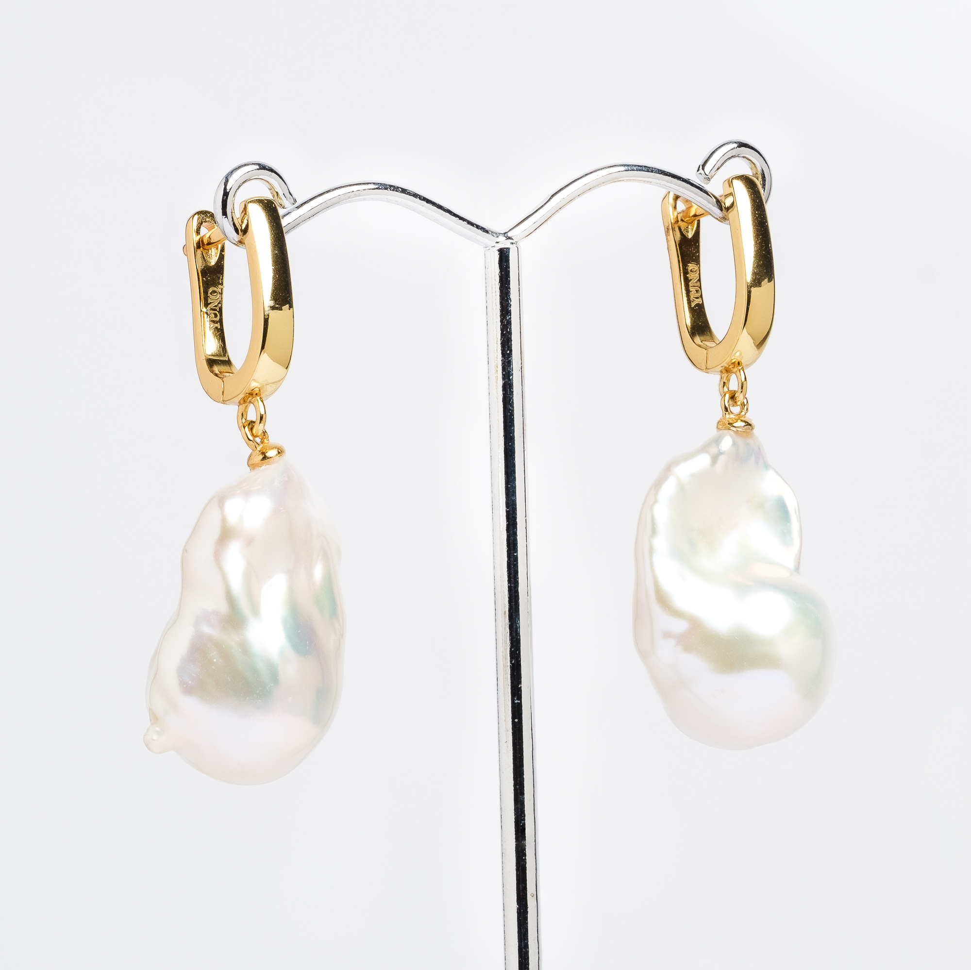- Внушителни барокови перли: Всяка обеца е украсена с едра естествена бяла перла с размери 12-14+ мм. Бароковите форми гарантират, че няма две напълно еднакви перли, което прави Вашето бижу истински уникат.