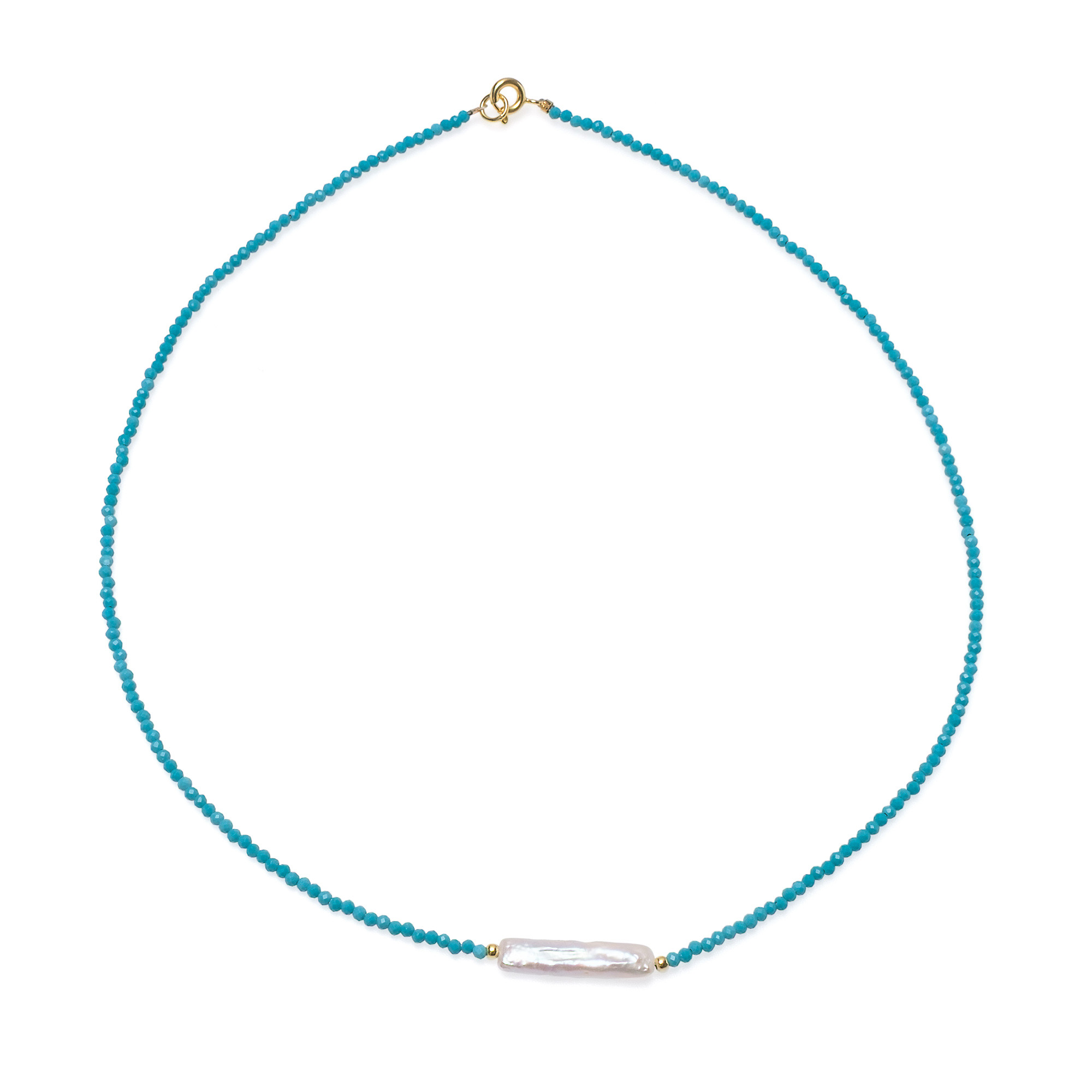 Колие с 1 брой пръчковидна бяла перла и тюркоаз.