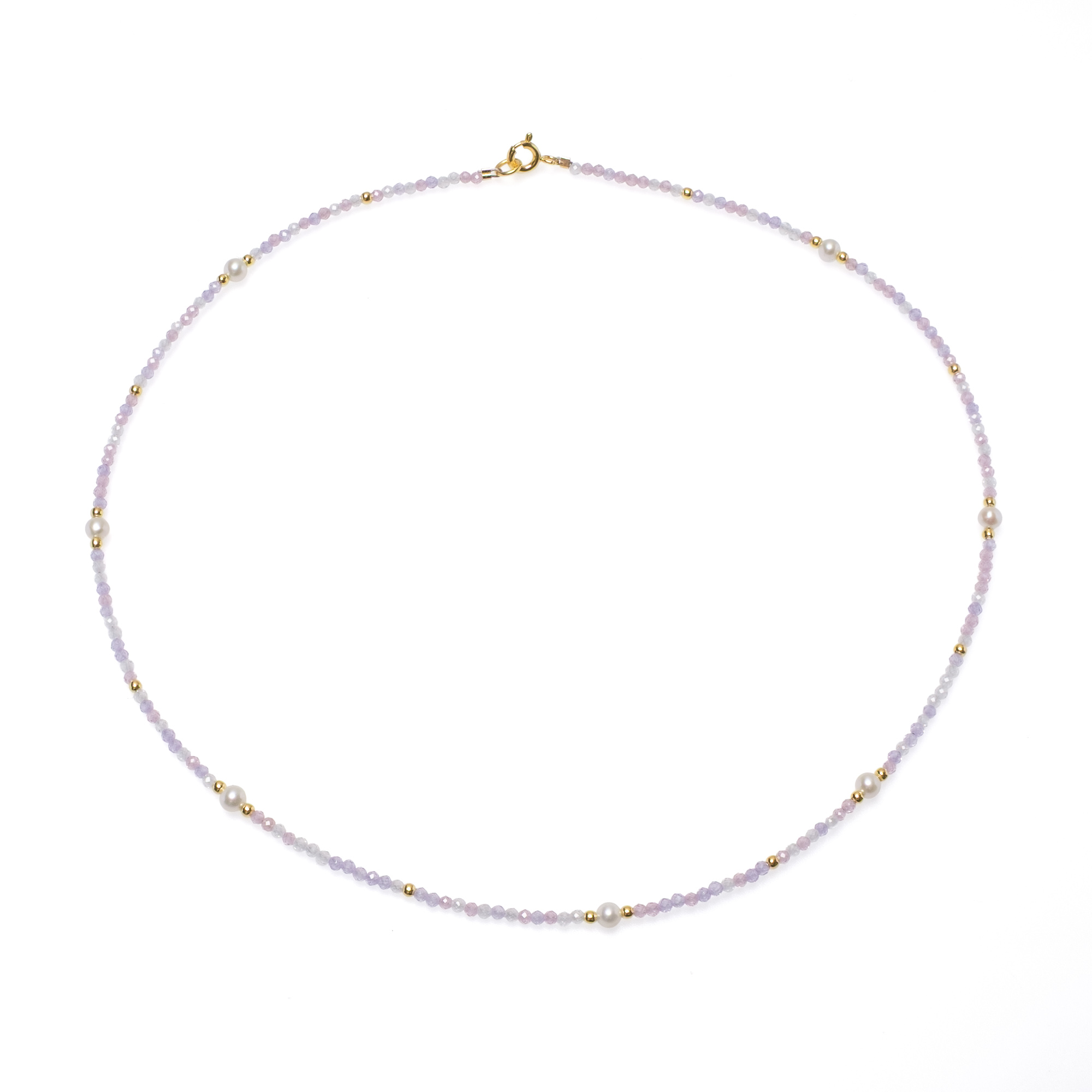 Нежно Колие с Лилав Шпинел и Бели Перли