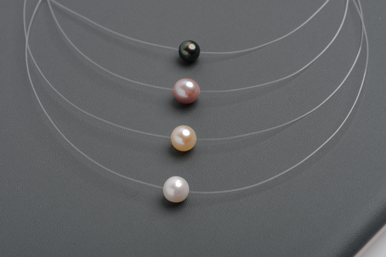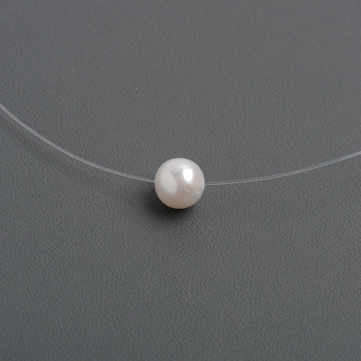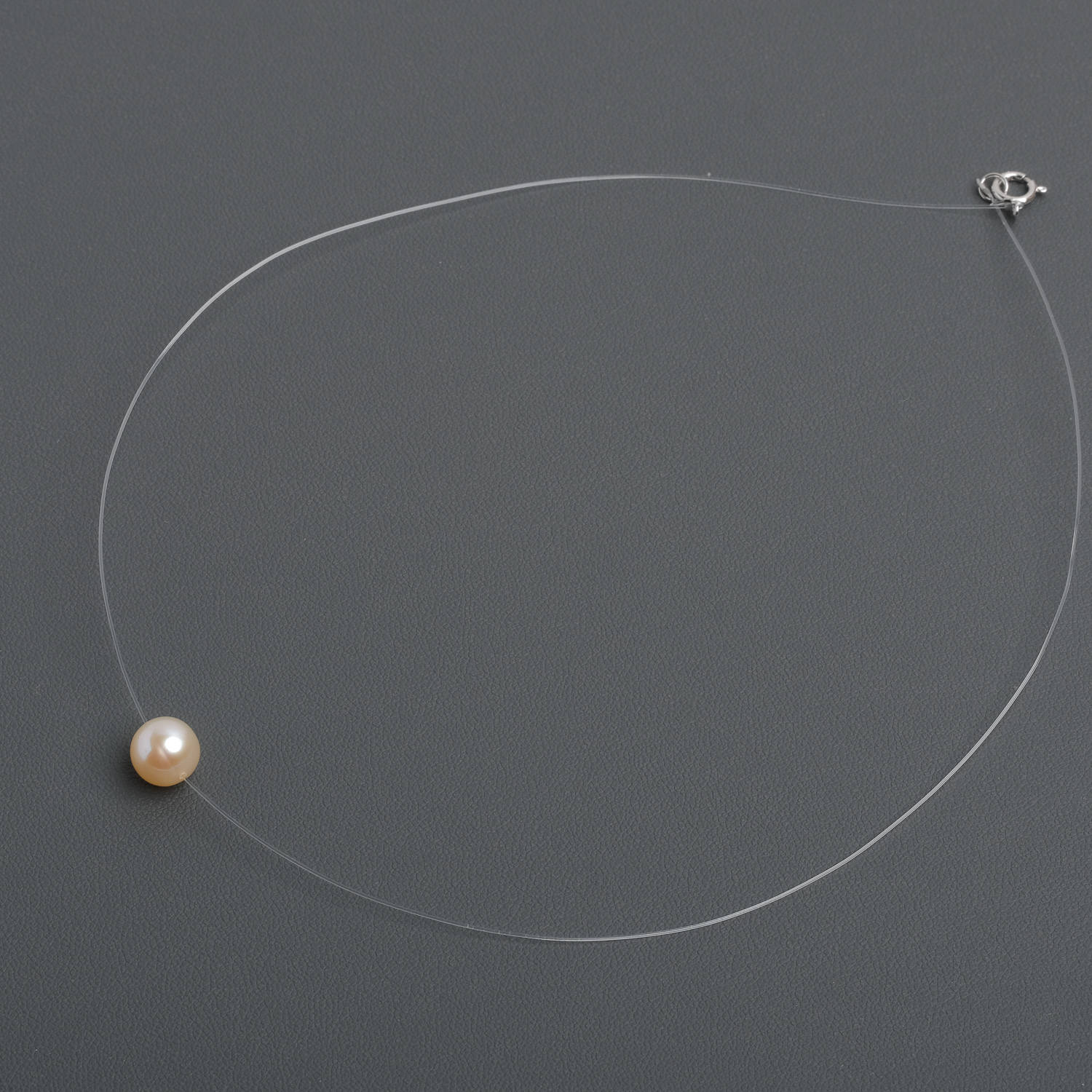Нежно колие с една бяла перла 8-9мм на корда и сребърна закопчалка,. Дължина 40см.