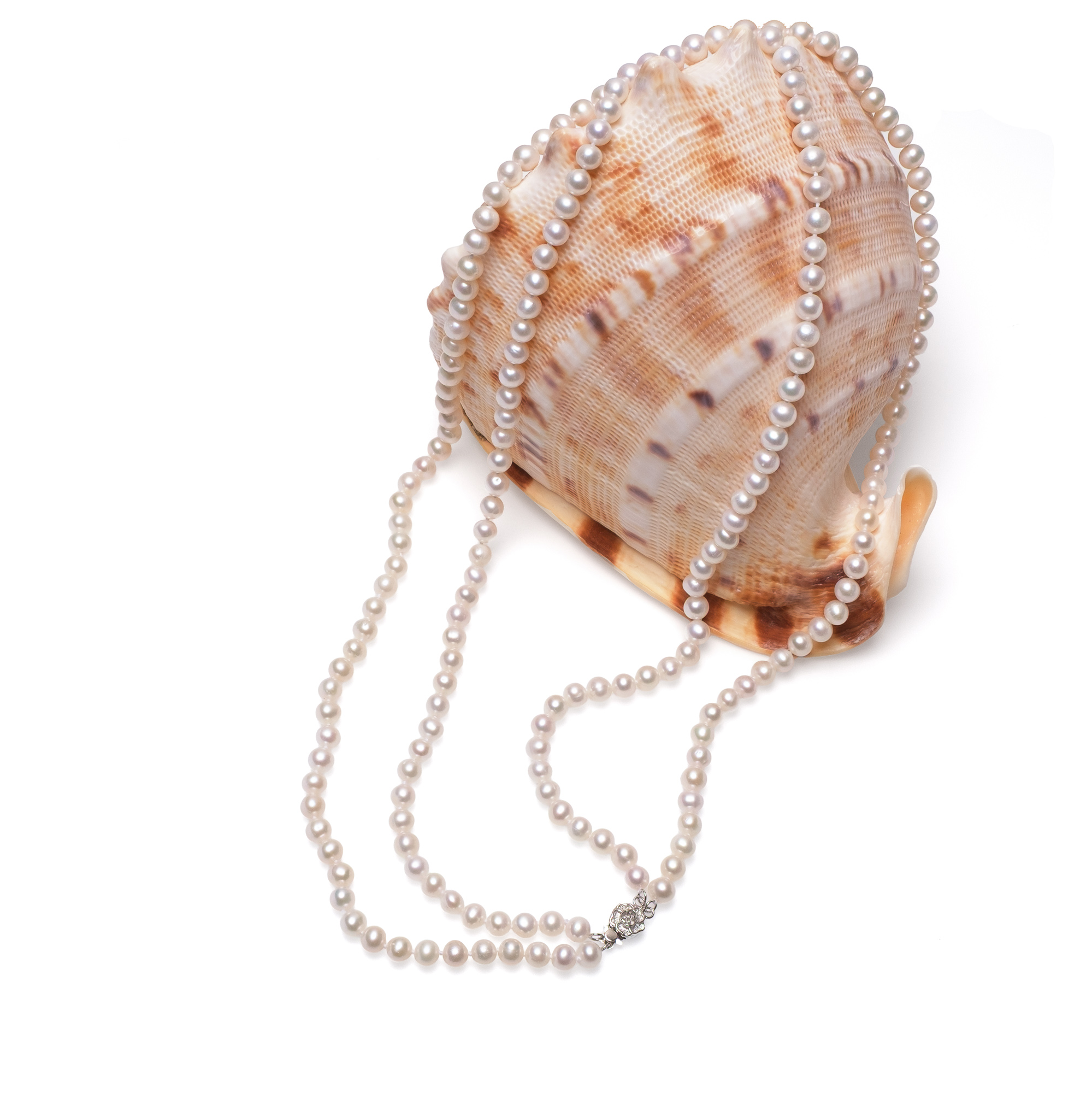 Колие 2 реда, 6-7мм бели перли, сребърна закопчалка, 59/66см