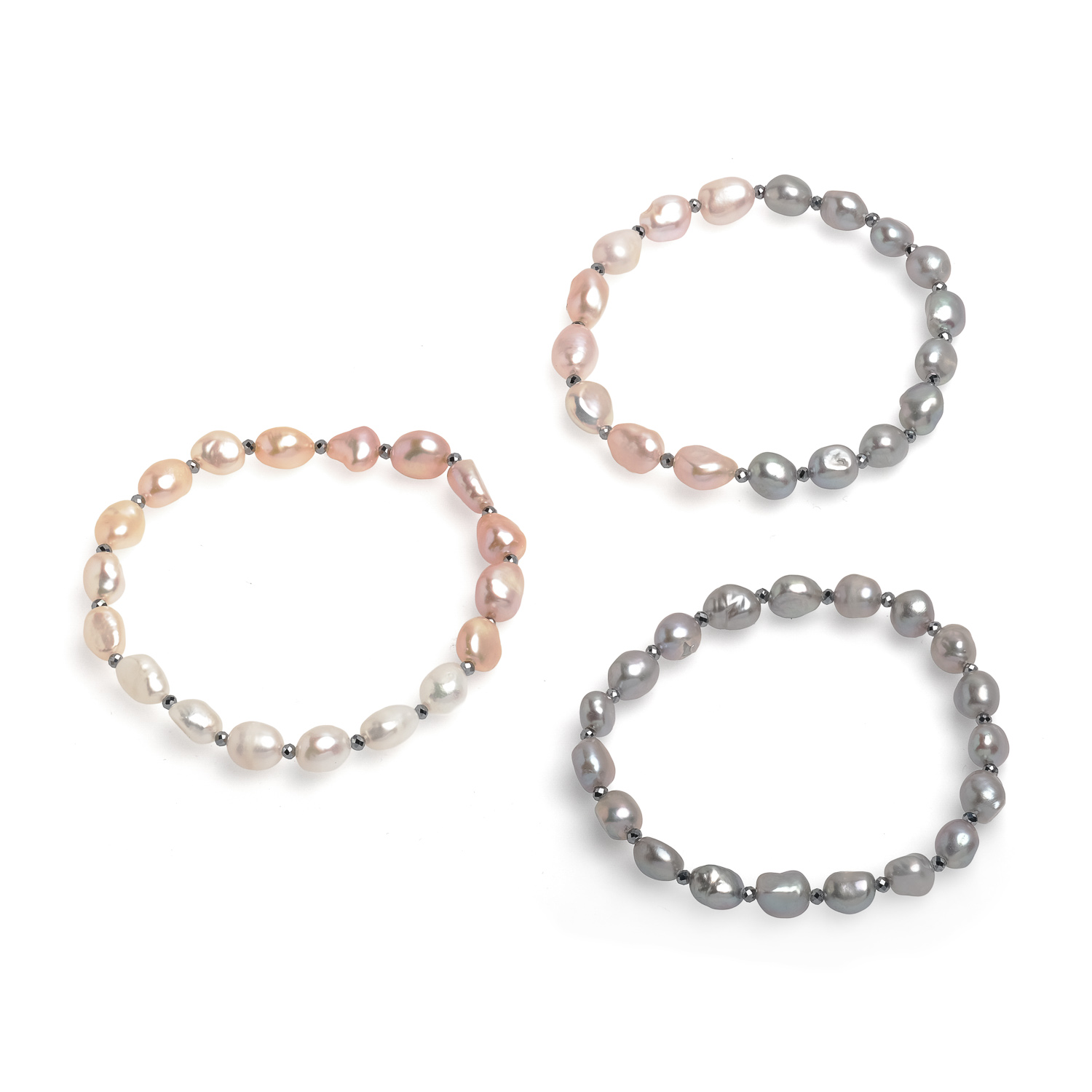 Гривна с асимиметрични бели перли 6-7мм и хематит. Гривната е на ластик и дължина 18 см.