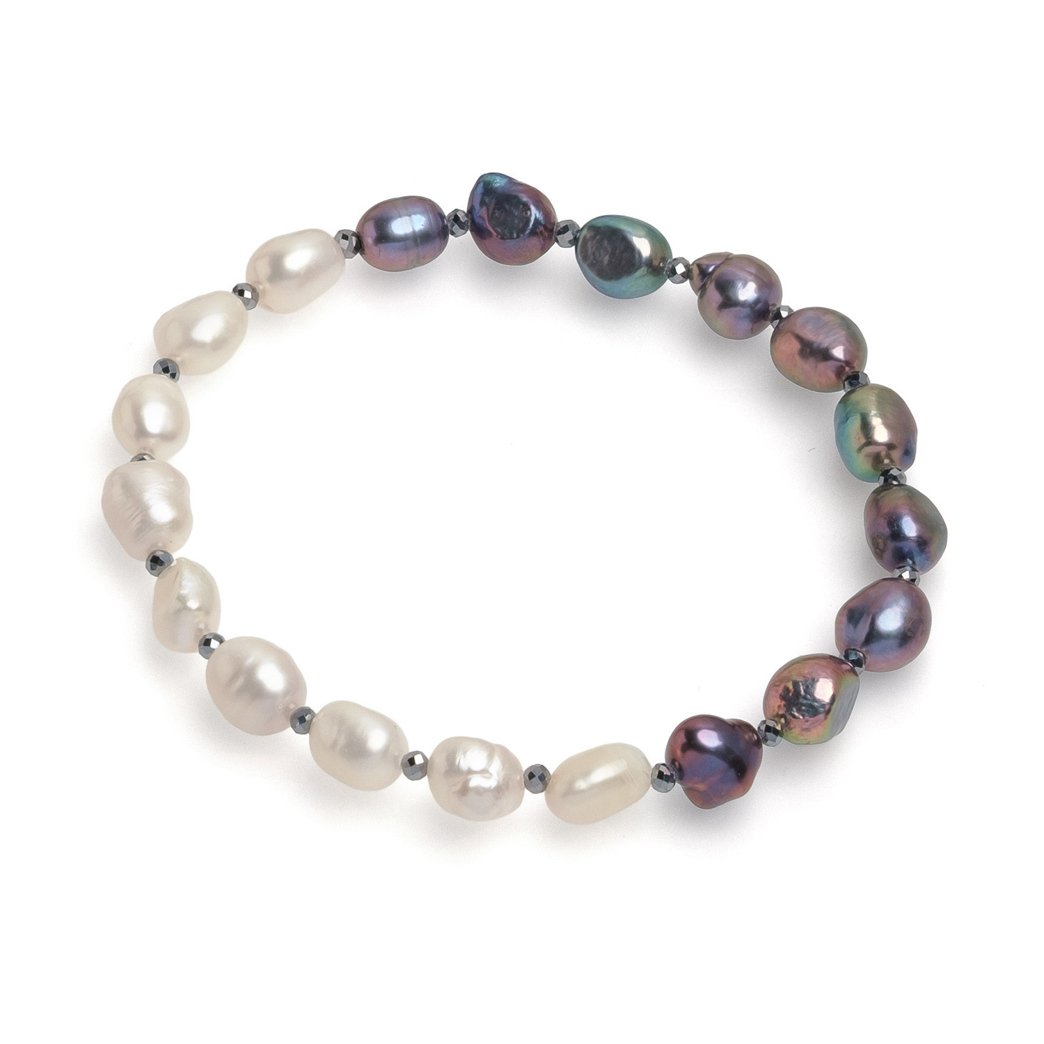 Гривна с асиметрични микс (бели и тъмни) перли 6-7мм и хематит. Гривната е на ластик и дължина 18 см.
