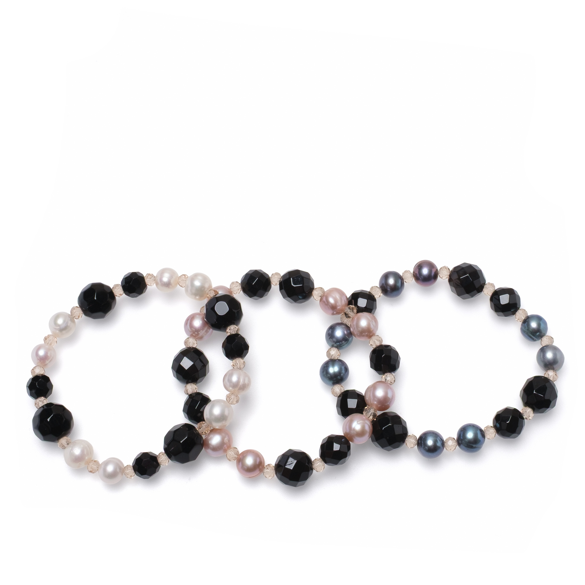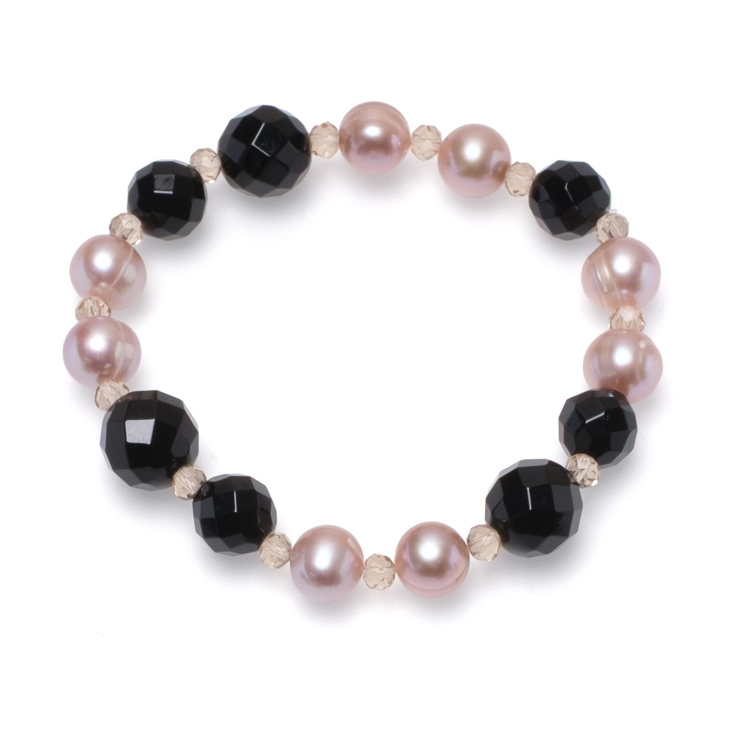 Елегантна гривна с лилави перли (8.5-10 мм) и оникс, които създават изтънчен контраст между нежността на перлите и силата на камъка. Перлите добавят блясък и женственост, докато ониксът придава дълбочина на дизайна.