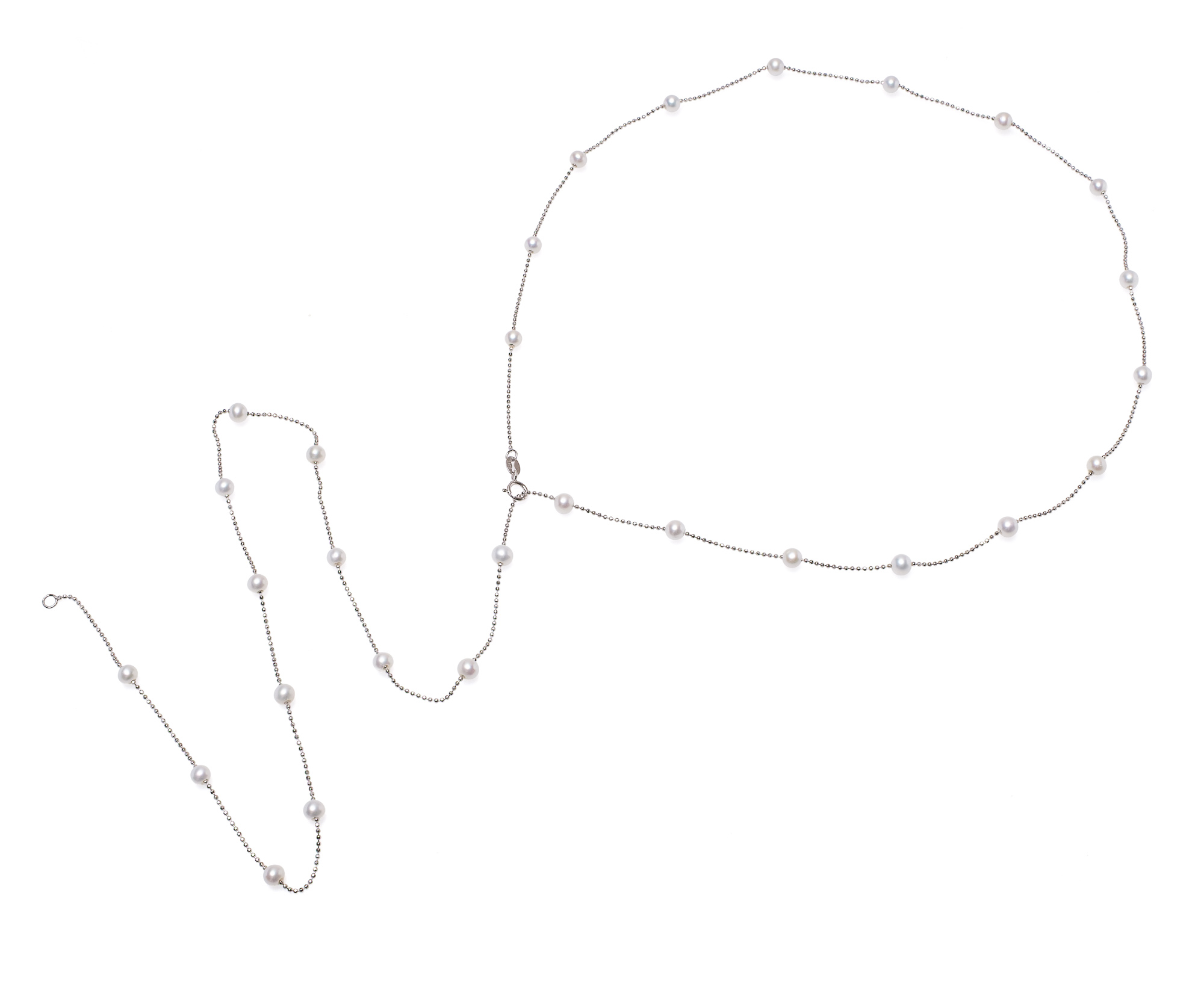 Колие сребро, 4-4,5мм. бели перли , 80см