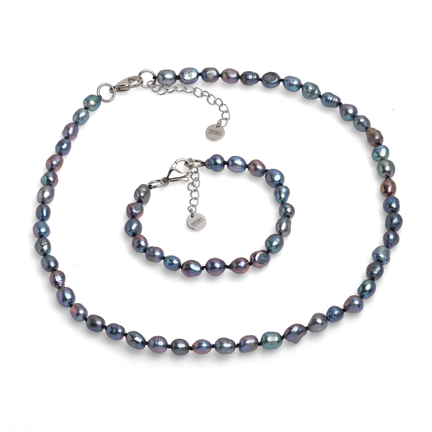 Комплект с колие и гривна с тъмни асиметрични перли 6-7мм Закопчалките на колието и гривната са от медицинска стомана.