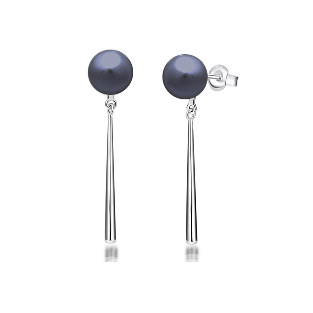 Сребърни обеци с тъмни перли 7.5-8мм. Закопчаване с щифт.