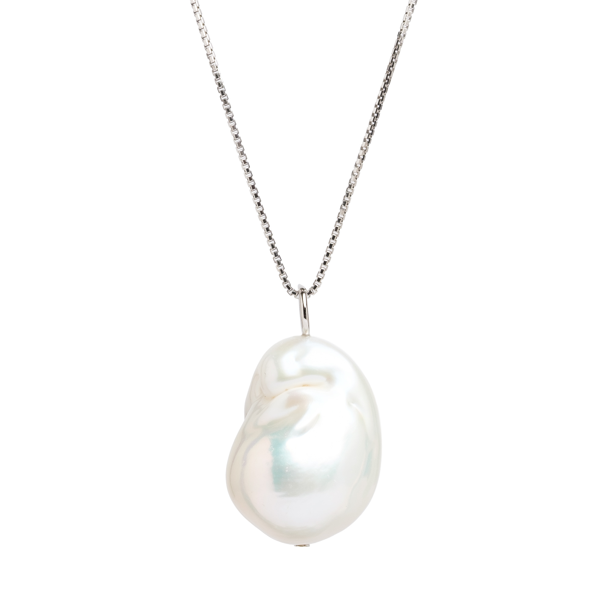 Висулка сребро,13-16мм бяла барокова перла на сребърен синджир.